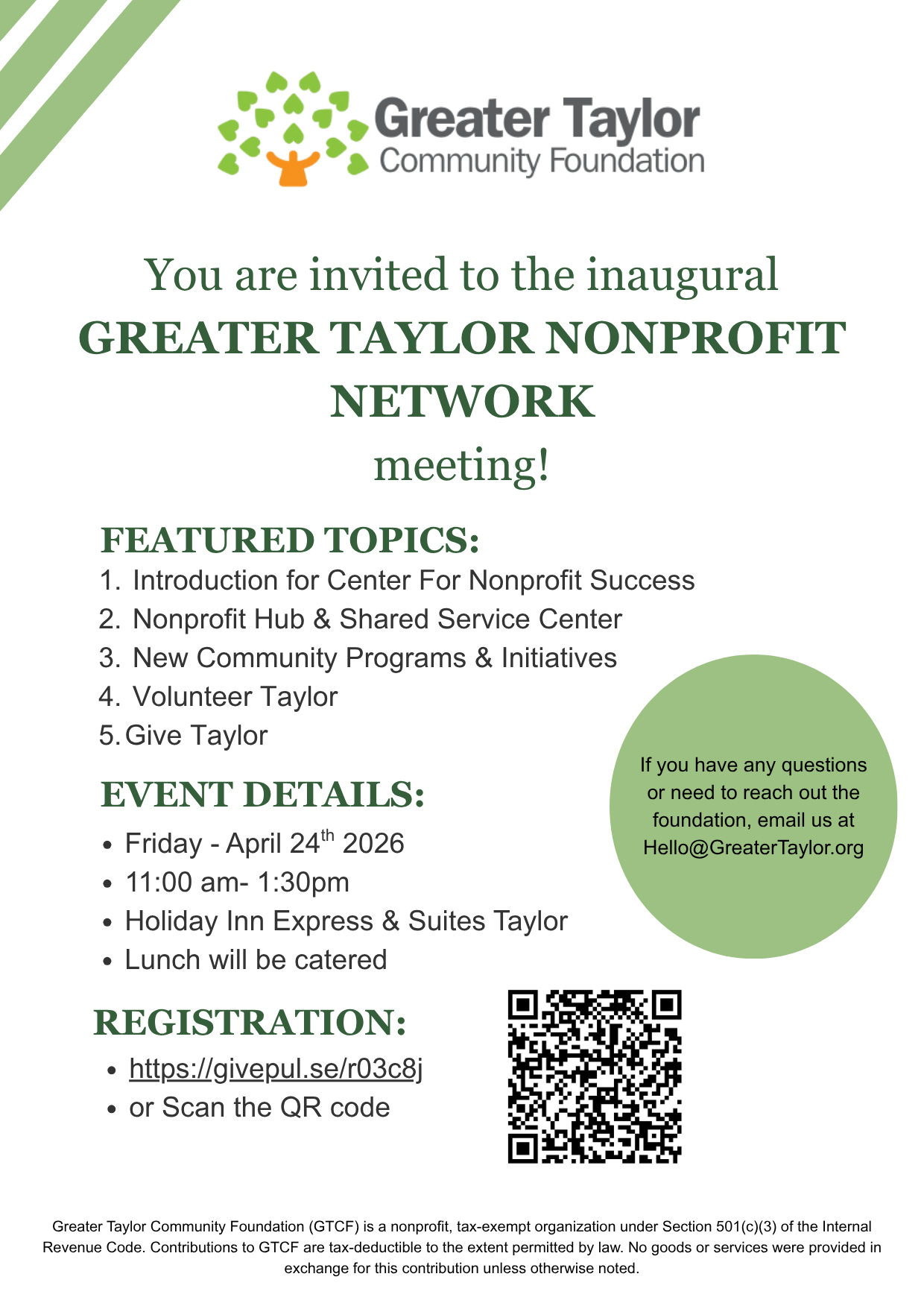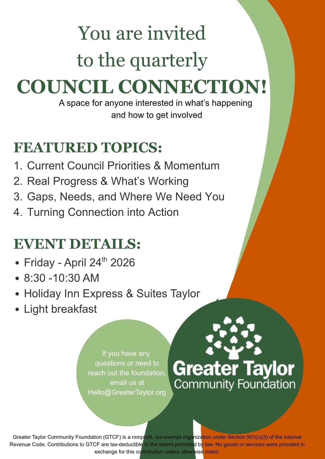 Want to learn more about future events or how to get involved with the Greater Taylor Community Foundation?